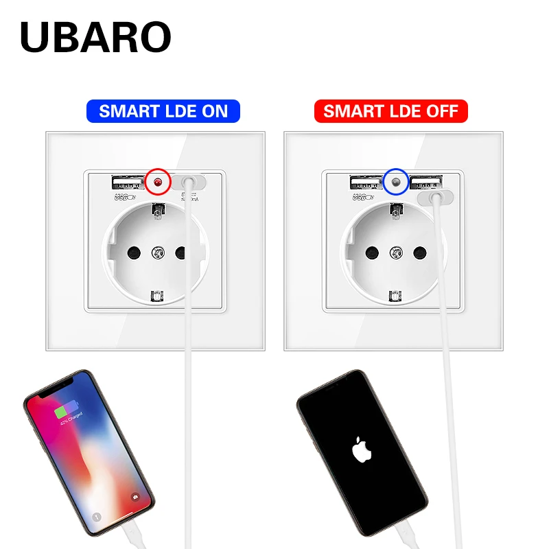 UBARO стандарт ЕС, Россия, настенная розетка с кристаллами, закаленное стекло, рамка USB 5 В 2100mA Enchufe Steckdose, домашние розетки 110-250 В