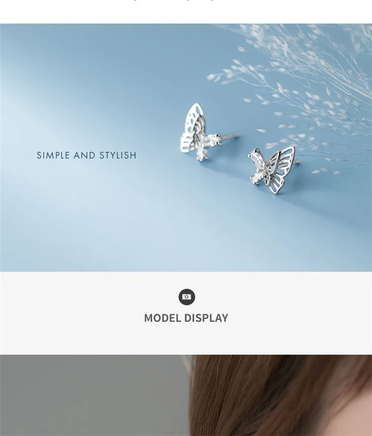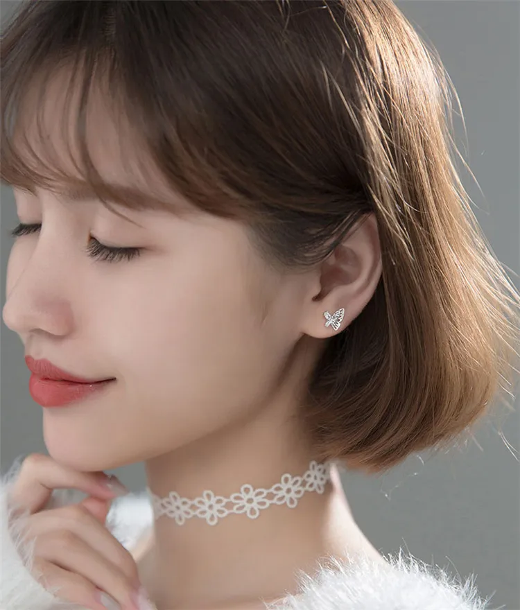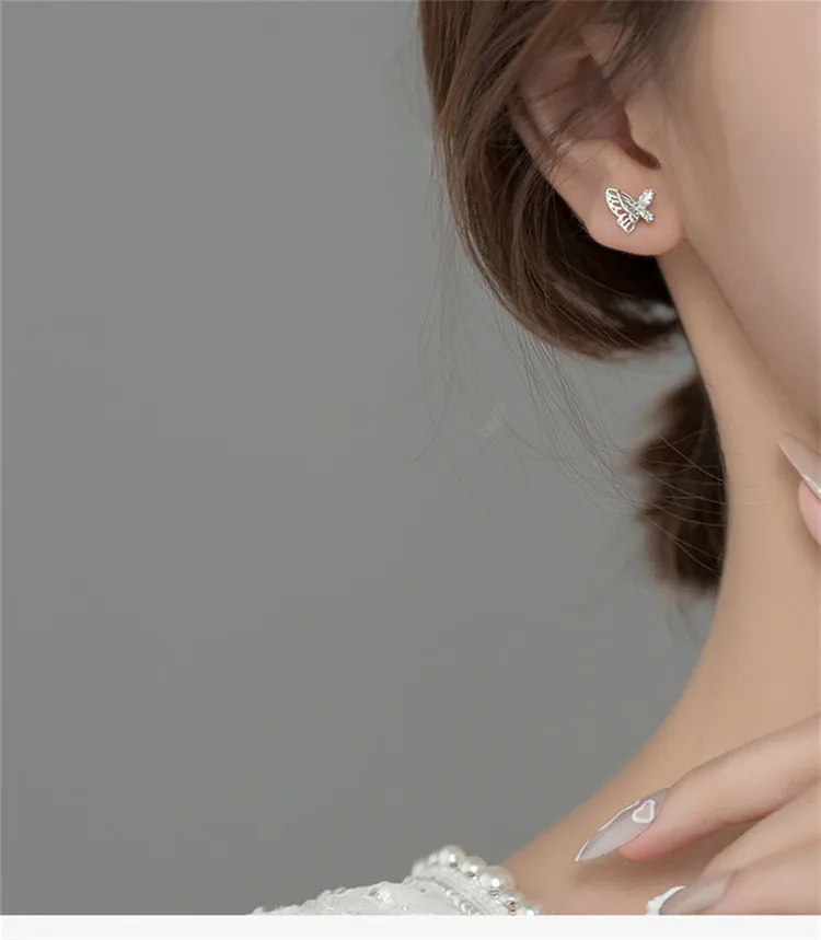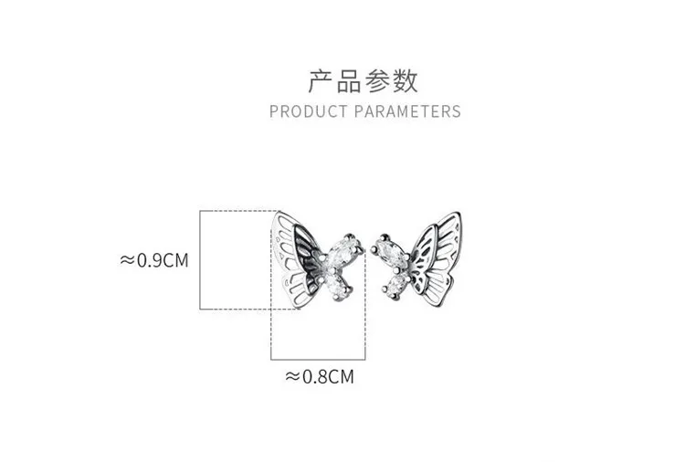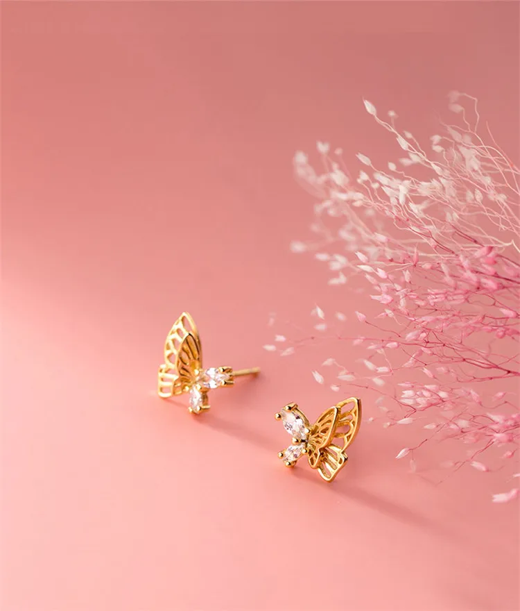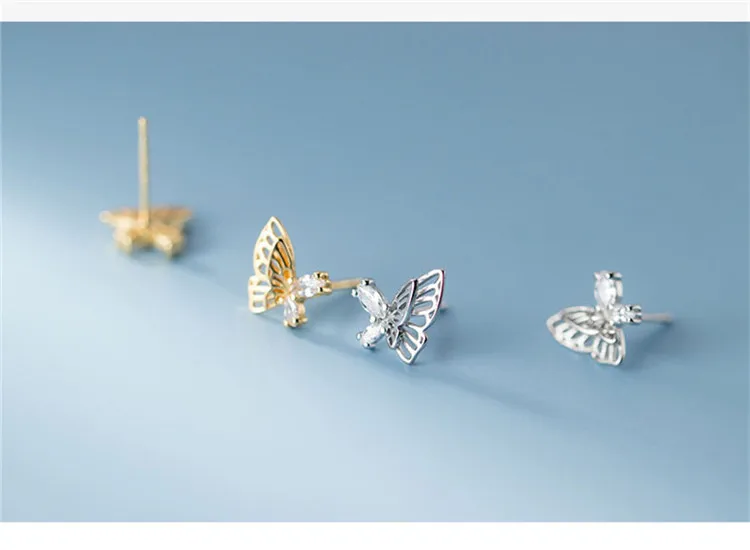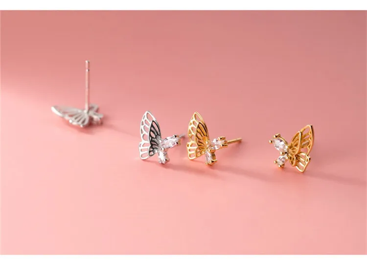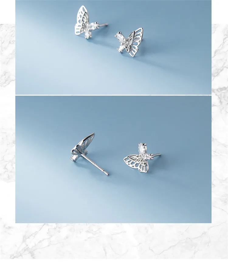 Элегантный 925 стерлингового серебра полые бабочка серьги-гвоздики для женщин, чешские циркониевые девочек серьги, модное ювелирное изделие для помолвки aretes