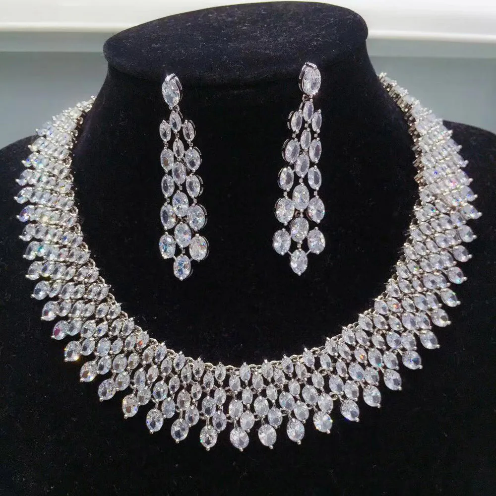 HIBRIDE Роскошный прозрачный кристалл циркония серьги и ожерелье на...