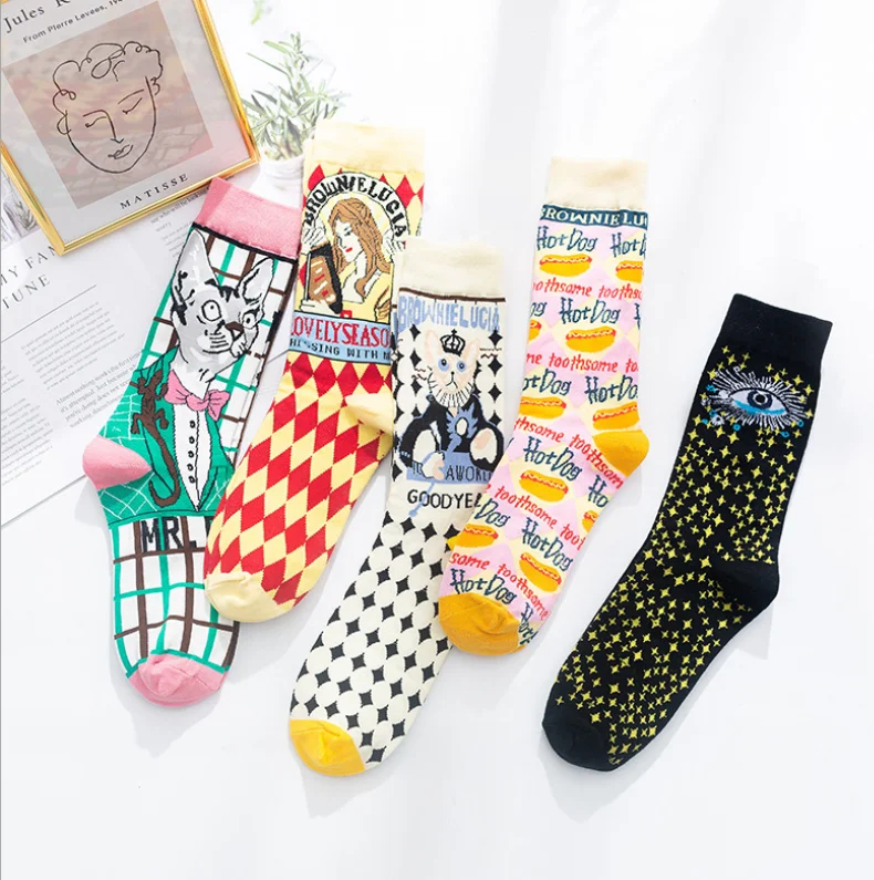 Весенне-осенние хлопковые носки в европейском и американском стиле