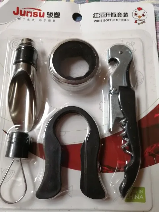 Отсутствует пробка для бутылки! Штопор - качество соответствует стоимости - 10 минут для того, чтобы приспособиться! Для меня основное было - кольцо, дозатор и нож для обрезания фольги! Норм!!! Как и хотела за 280 р. а не за 1200 ))))))))))))