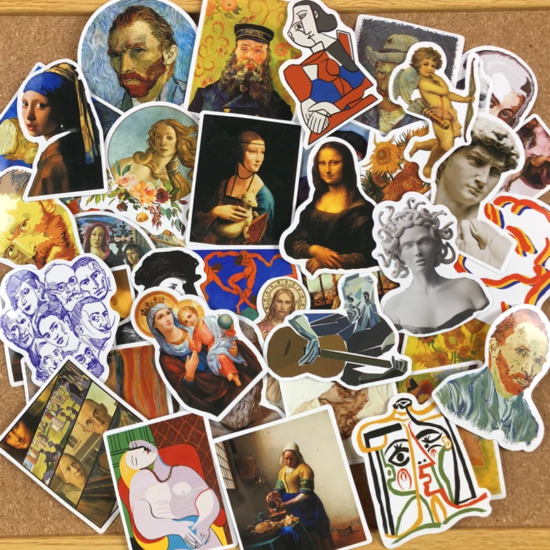 ⚡Наклейки VAN GOGH 52 шт.-Размер 6-8 см. Идеально подходит для украшения ноутбуков, трекпадов, клавиатуры, рюкзаков, скейтбордов, багажа, бутылок с водой, скрапбуков, зеркал, ноутбуков, журналов, автомобилей, бамперов, велосипедов, спальни, чехол для путешествий, мотоцикла, сноуборда, PS4. Не стесняйтесь настраивать свои вещи, сделайте вашу индивидуальность сияющей!