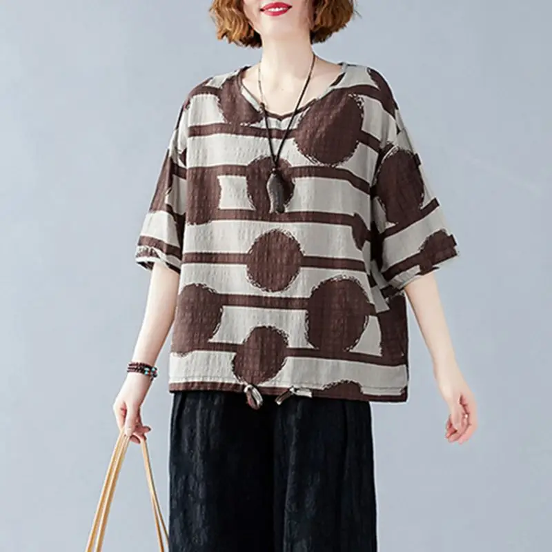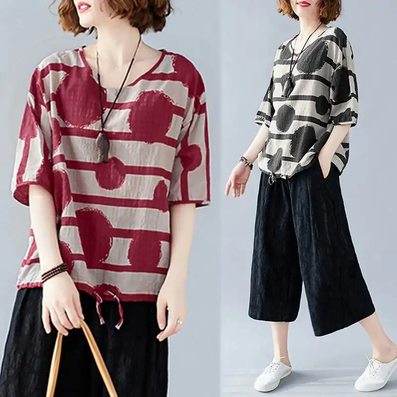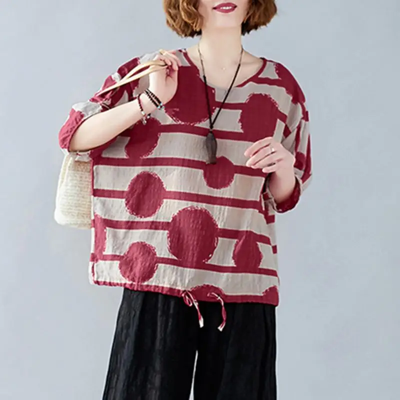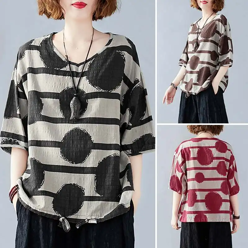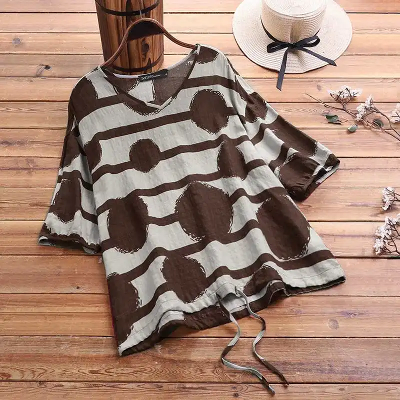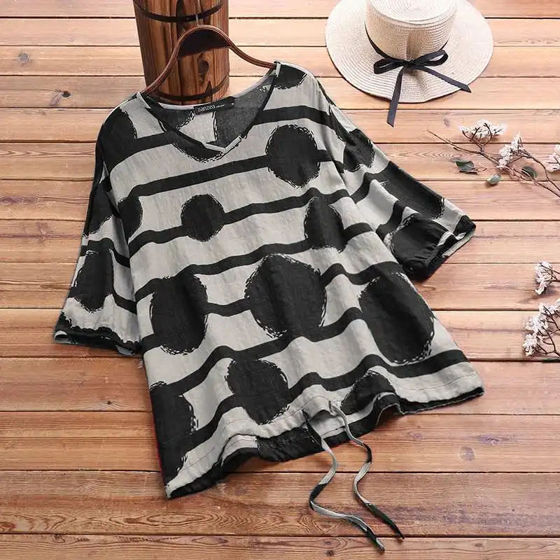 Блузка ZANZEA Женская в горошек, кафтан с принтом, топ с коротким рукавом, мешковатая туника с кулиской, летние топы