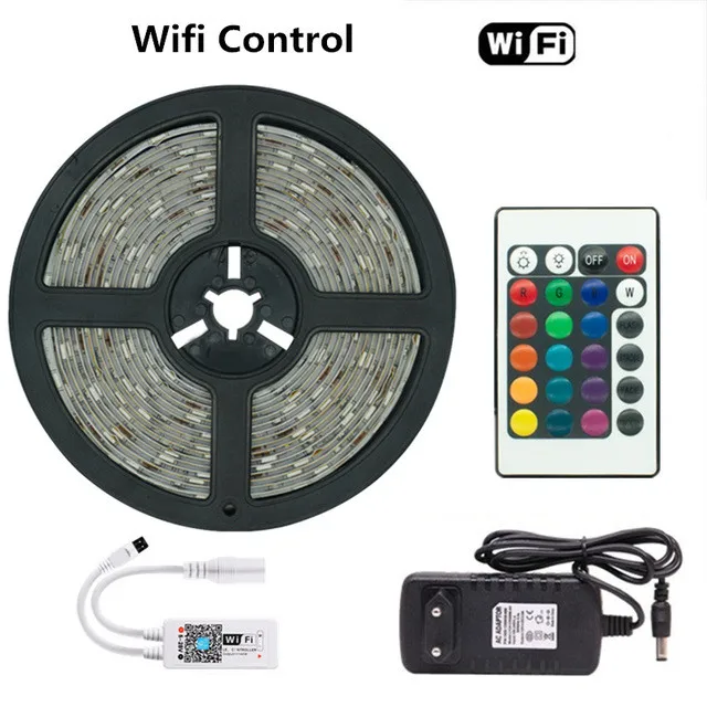 Светодиодная лента, 12 В, Bluetooth, Wi-Fi, цветная подсветсветильник, ночная лампа SMD 5050, 2835, 5 м, Светодиодная лента RGB с блоком питания и пультом дистанционного управления