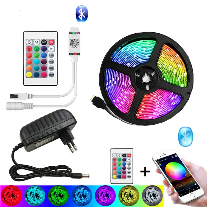 Светодиодная лента с подсветкой, Bluetooth, цветная подсветка, ночная лампа SMD 5050 2835 RGB, Светодиодная лента 5 метров с блоком питания, пульт дистанционного управления
