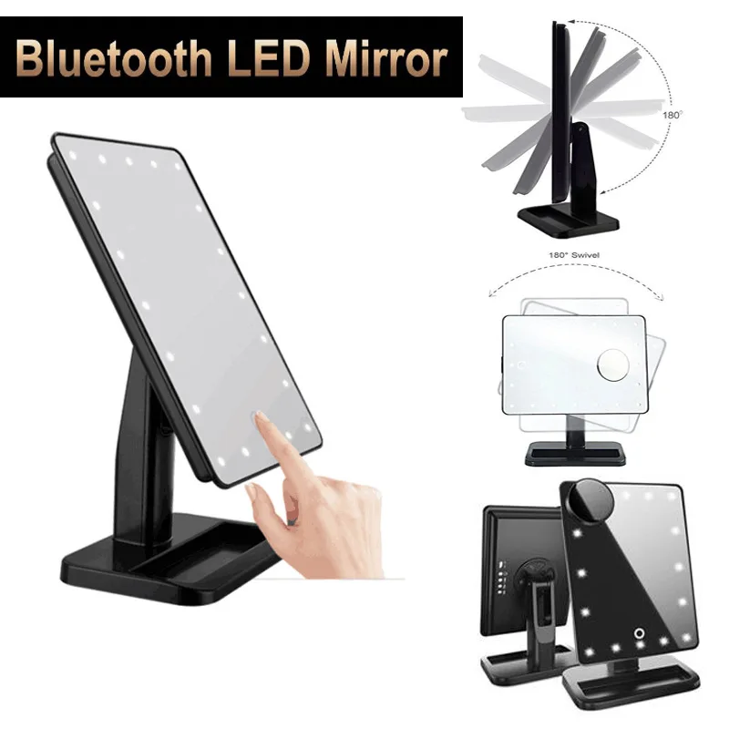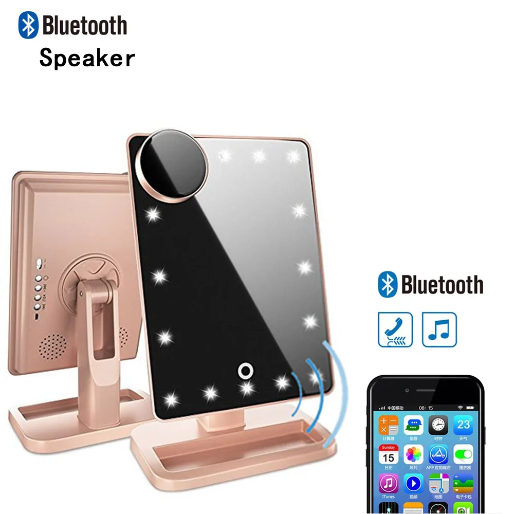 Bluetooth музыкальное зеркало настольное с 20LED светильник зеркало для макияжа Сенсорное затемнение настольное зеркало
