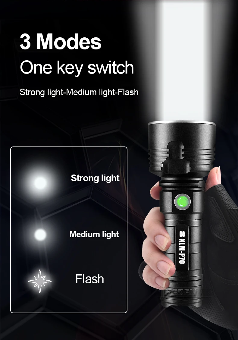 《 XHP70 Параметры продукта 》• Модель светодиодный бусины: CREE XHP70 светодиодный• Лампочка/светодиодный чип на плате) Срок службы: 100000 часов• Диапазон: 650-1000 метров• 3 режима: высокий/низкий/SOS• Тип батареи: аккумулятор 18650 или 26650• Уровень водонепроницаемости: IPX-6• Цвет корпуса: черный• Материал: T6063-T6 авиационный алюминий.• Перезаряжаемый: микро-usb для компьютера, usb для автомобиля, usb-разъем для зарядки• Время освещения: аккумулятор 18650 4-5 часов; Аккумулятор 26650: 7-10 часов.• Тип фонарика: охота, отдых на открытом воздухе, Кемпинг, работа, рыбалка, техническое обслуживание, приключения, туризм, альпинизм, поиск и спасение.