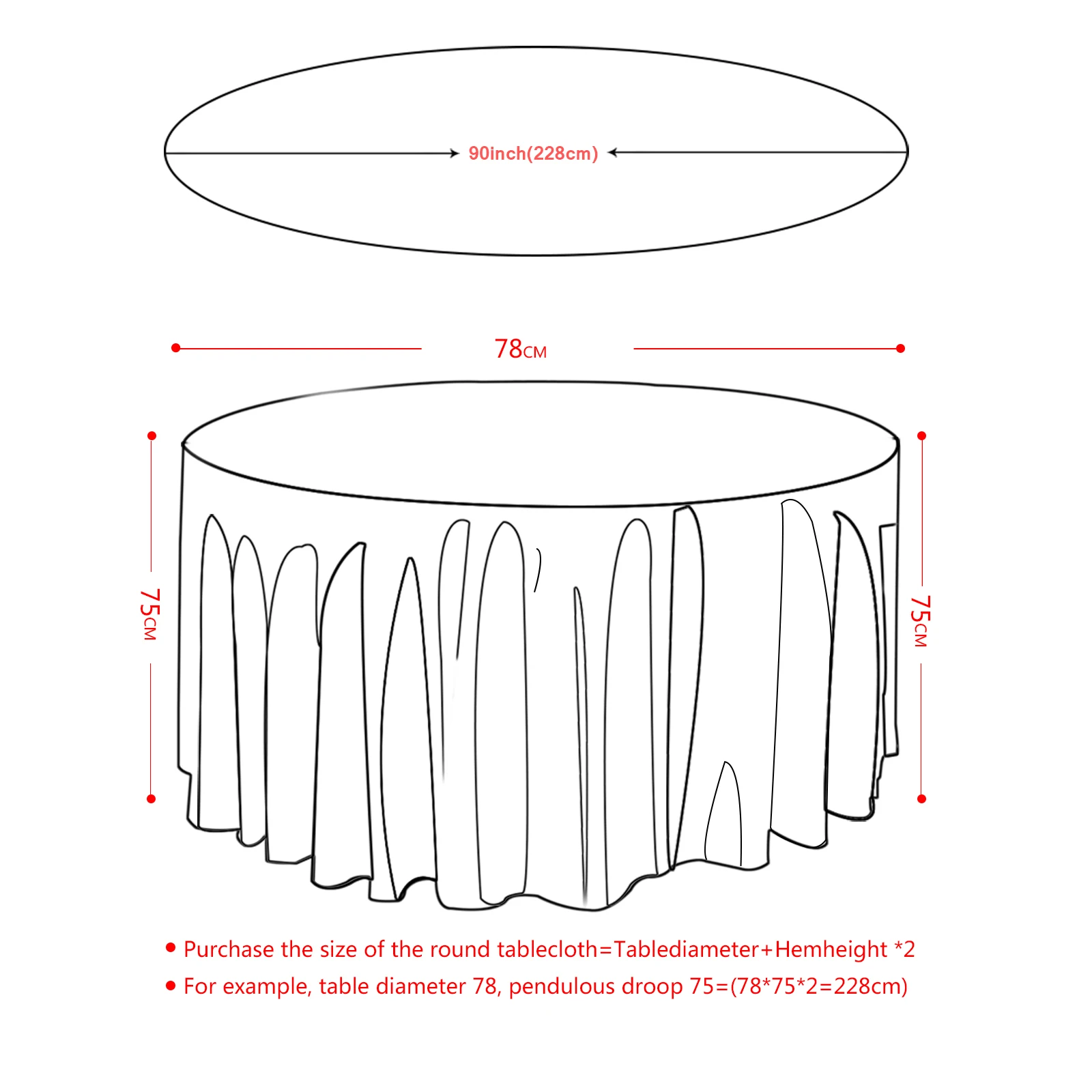 Если размер вашего стола 150 см, вам нужна высота подола 35 см, скатерть 150 см + 35 см * 2 = 220 см (высота подола зависит от вас), так что вам нужно купить скатерть 220 см.