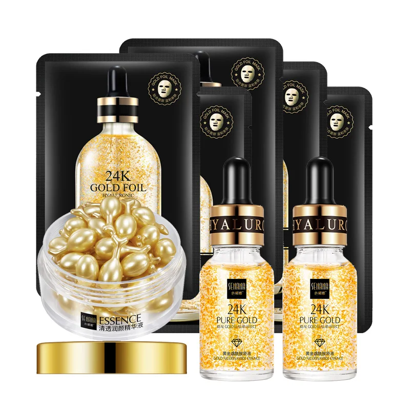 Покрытыем цвета чистого 24 каратного золота, гиалуроновая кислота Сыворотки анти под глазами против старения крем против морщин основной питательный сухую кожу маска для лица Питательный никотинамид крем для лица