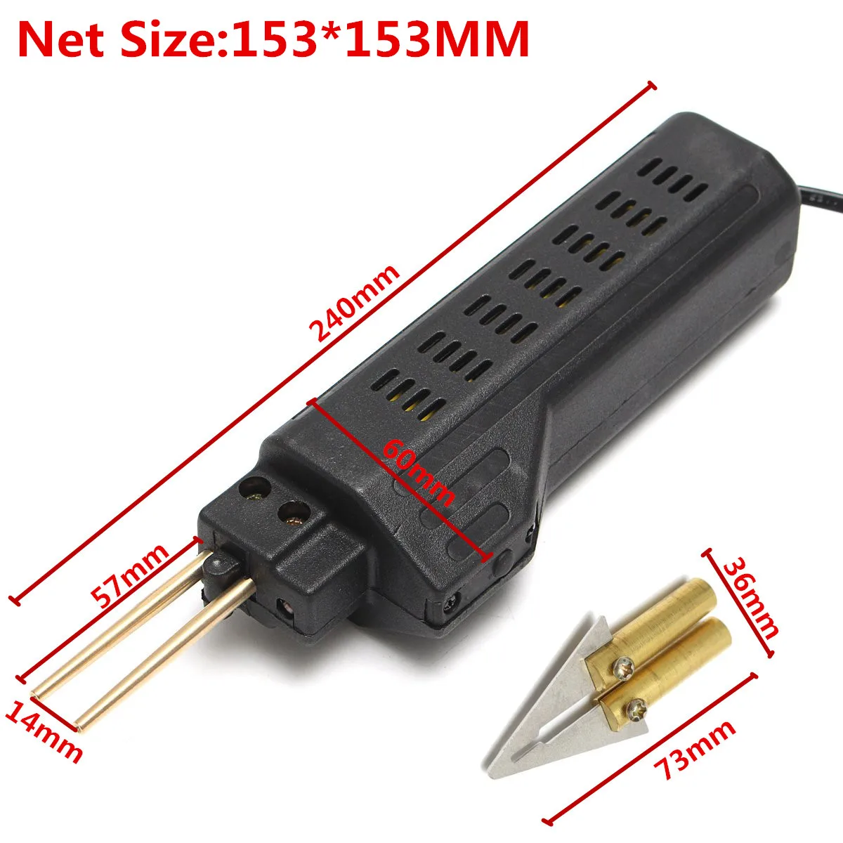 Инструкция-Подключите горячий степлер к источнику питания 220-250 В.-Местная температура сварки для плавной регулировки, может быть подходит для любой толщины сварки пластикового материала.-Выберите подходящий тип сварочного гвоздя, вставьте идеальный электродный рот.-Сварка внутренней поверхности поврежденной части сварного шва.-Нажмите кнопку пуска, зарядите Плавленный пластик, чтобы правильно сварить.-При плавлении гвоздей в нужное положение отпустите кнопку и подождите несколько секунд, чтобы охладить пластик.-Повторите эту работу шаг, пока ногти не будут равномерно распределены, а затем вырежьте выступающие части наклонные кусачки.