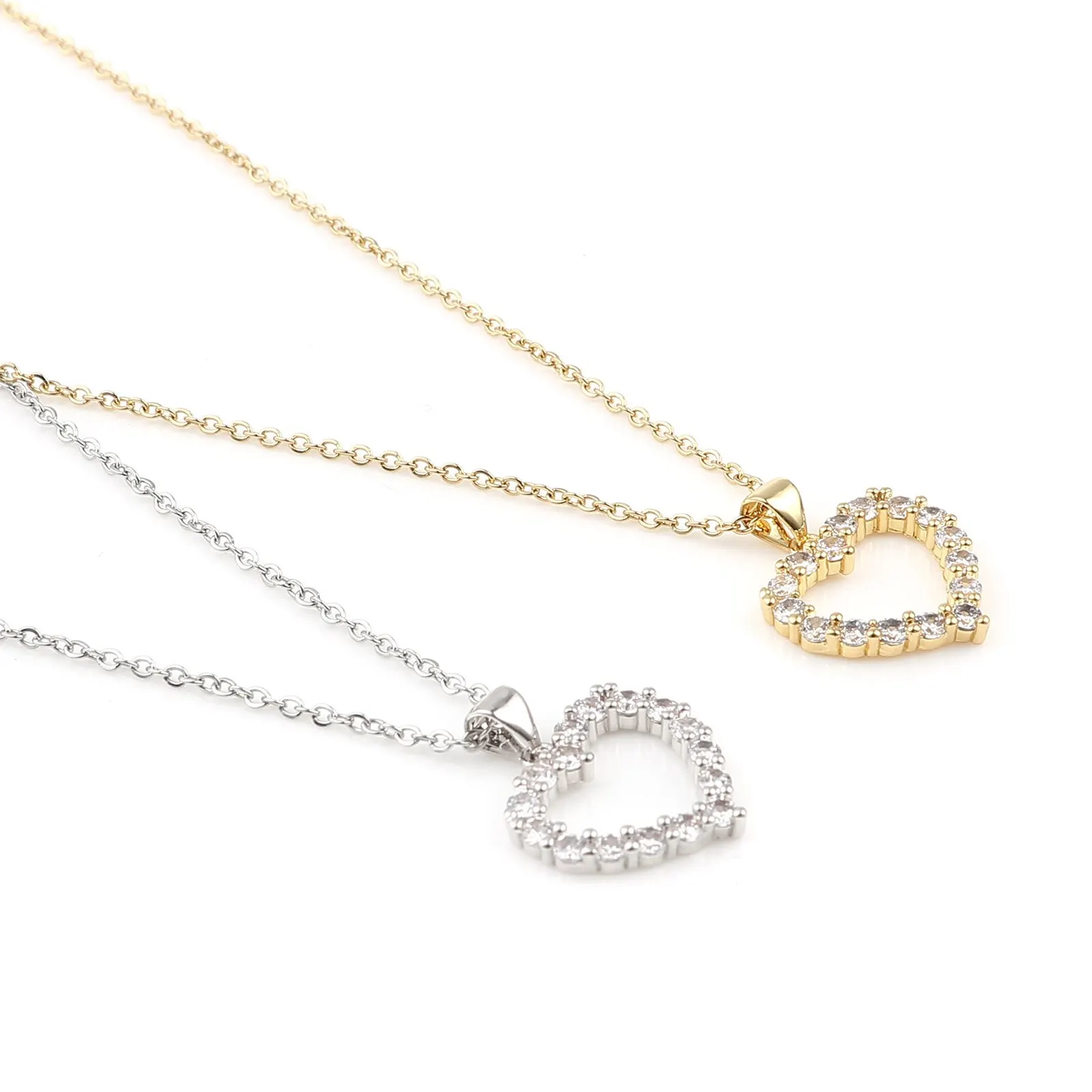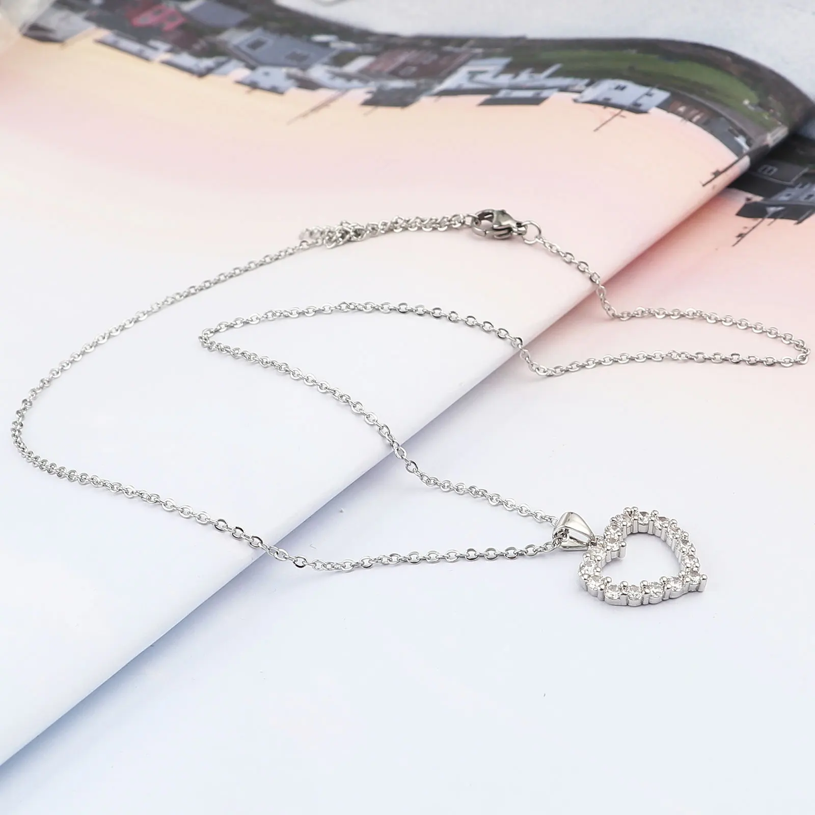 1 предмет Нержавеющаясталь ко Дню Святого Валентина Соединительный кабель цепь кулон сердце Цепочки и ожерелья в форме сердца с прозрачным кубическим цирконием, длиной 45 см