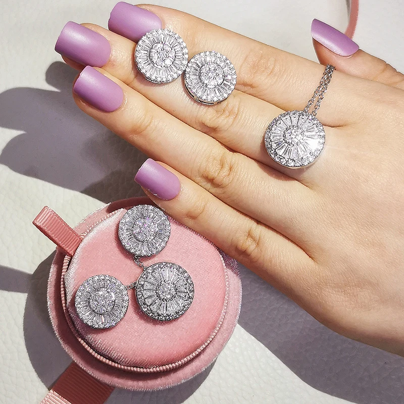 Набор женских ювелирных изделий из серебра 925 пробы, с круглыми кр...
