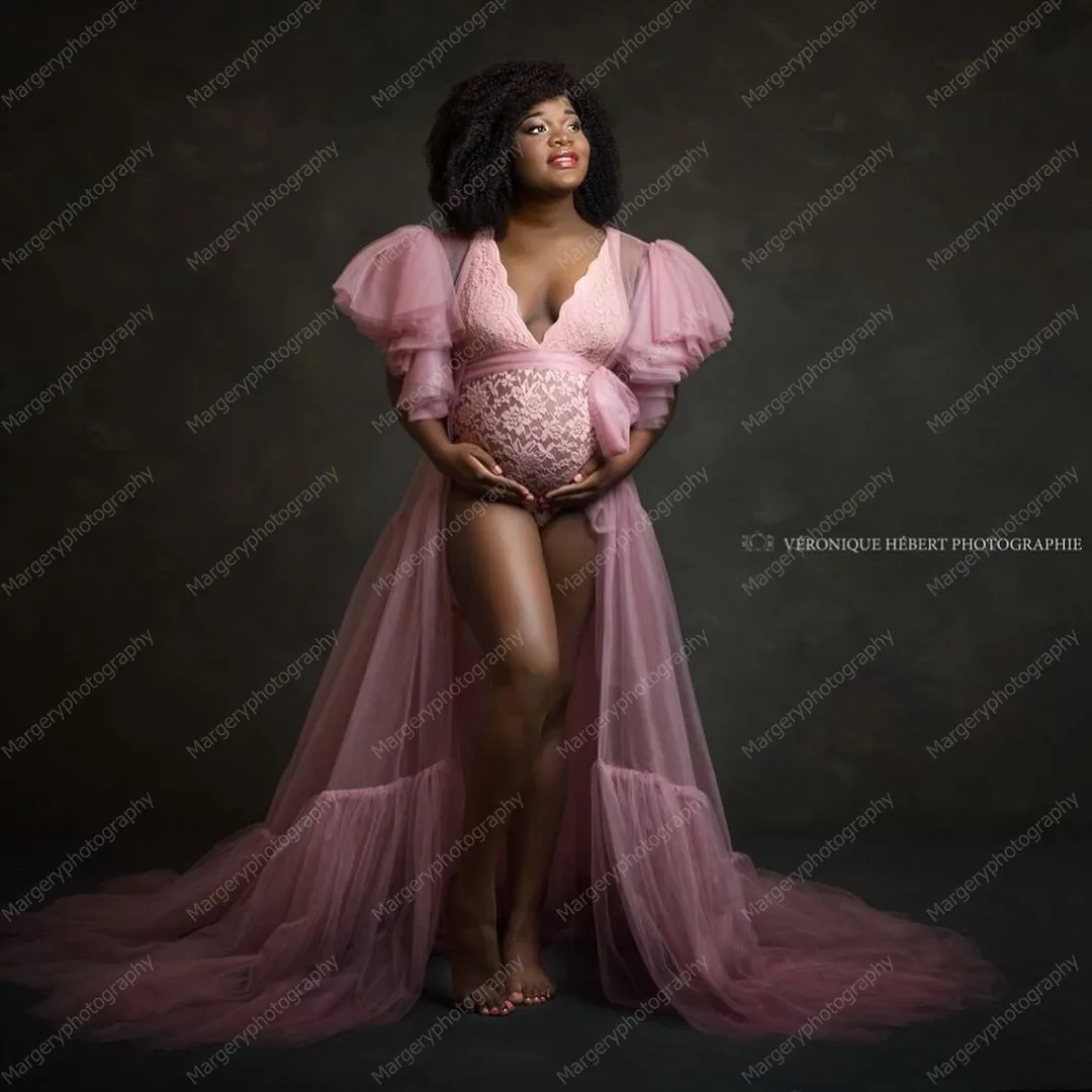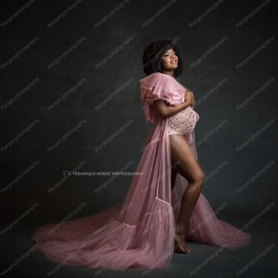 Розовые тюлевые халаты для беременных, сделанные на заказ фатиновые платья для беременных с короткими рукавами для фотосъемки