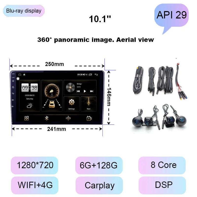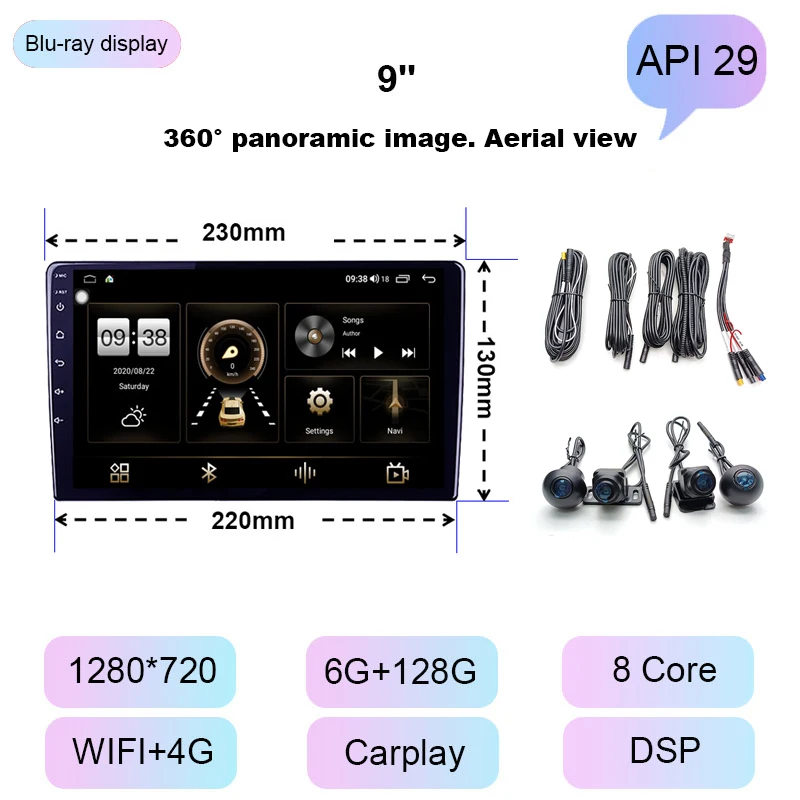 COHO 9 ''10,1'' Android 10 360 панорамный аппарат все в одном. Мультимедийный проигрыватель с 8-ядерным мультимедийным радио GPS 4G 6 + 128G