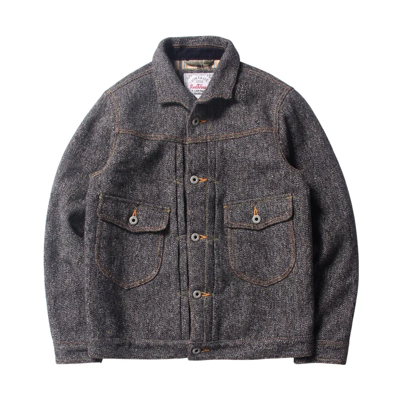 Шерстяная куртка Red Tornado с солью и перцем, винтажная рабочая одежда, Стильное мужское твидовое пальто