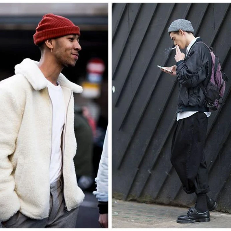 Популярная мужская вязаная шапка бини Skullcap Матросская Кепка с манжетами без полей Ретро Темно-синяя стильная Шапка-бини CNT 66