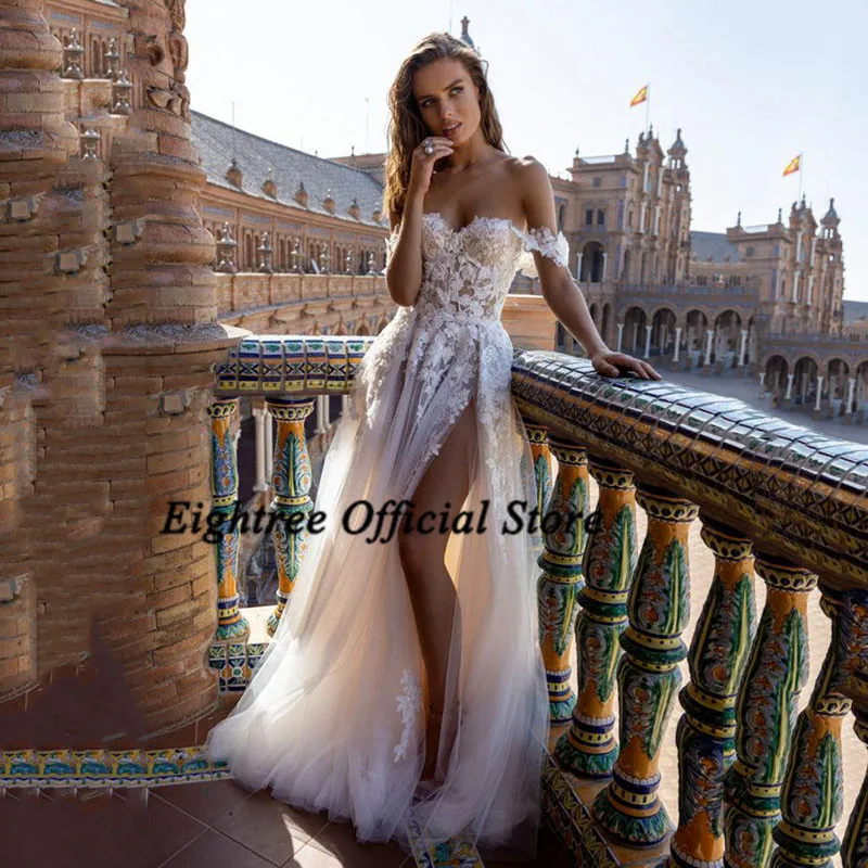 Eightree элегантное ТРАПЕЦИЕВИДНОЕ свадебное платье без бретелек свадебное платье Бохо свадебное пляжное платье