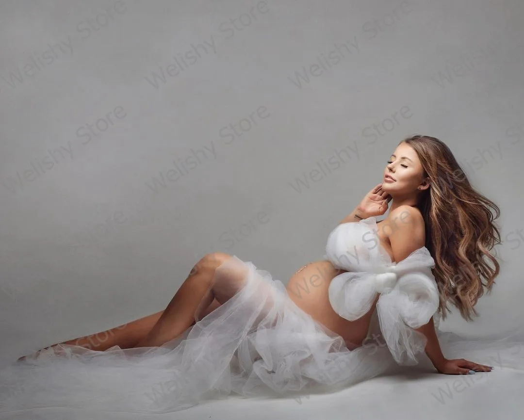 Haute Couture платье для беременных для фотосессии с открытыми плеч...