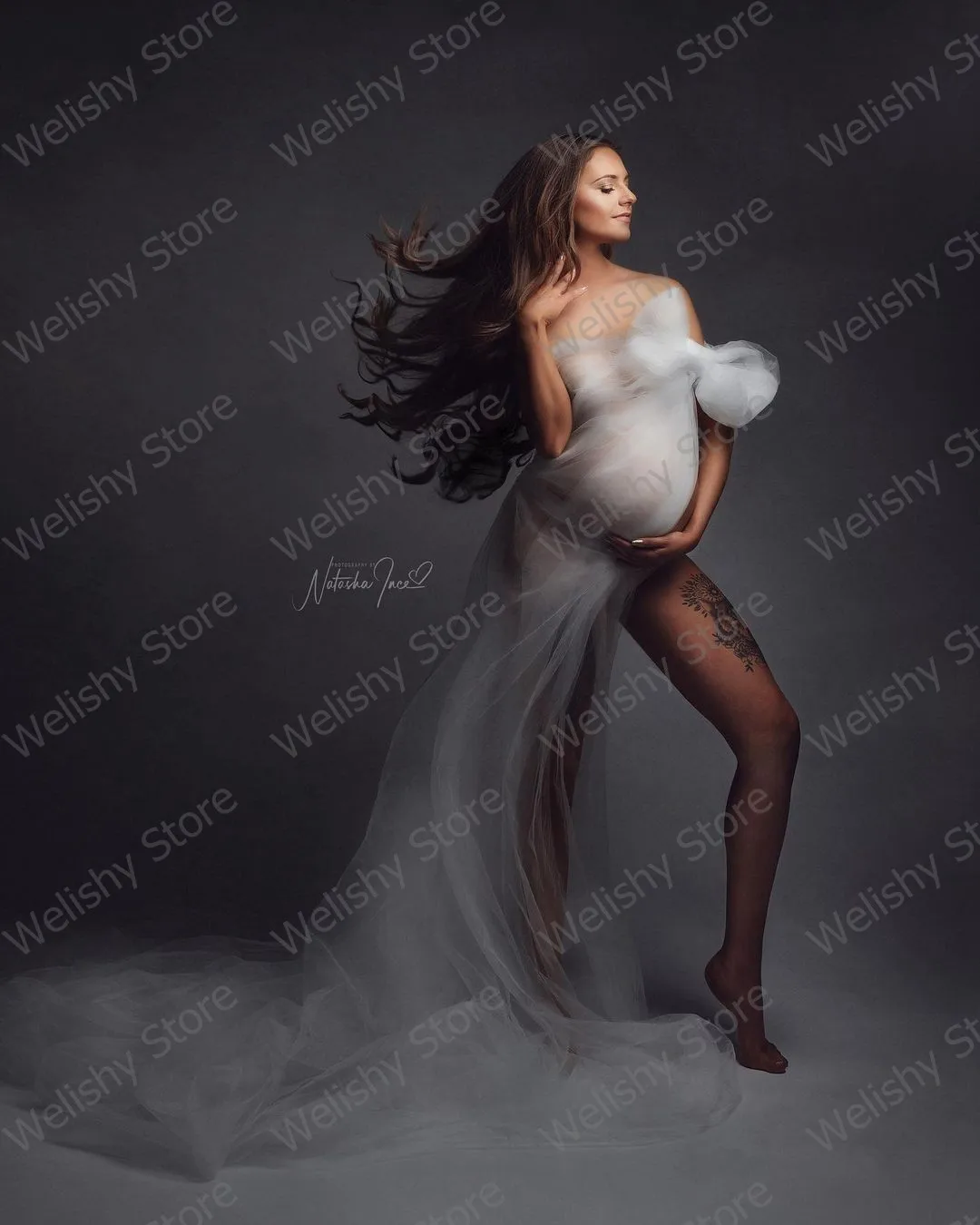 Шикарное прозрачное белое Тюлевое платье для невесты с эффектом иллюзии для беременных женщин пикантные длинные платья с бантом для фотосессии