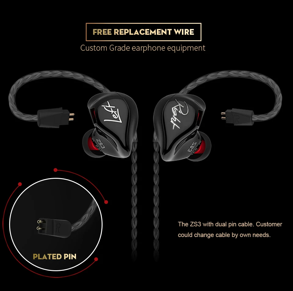 Эргономичные съемные наушники KZ ZS3, наушники-вкладыши, аудиомониторы, шумоизоляция, Hifi, музыка, спортивные наушники для ZAX ZSX