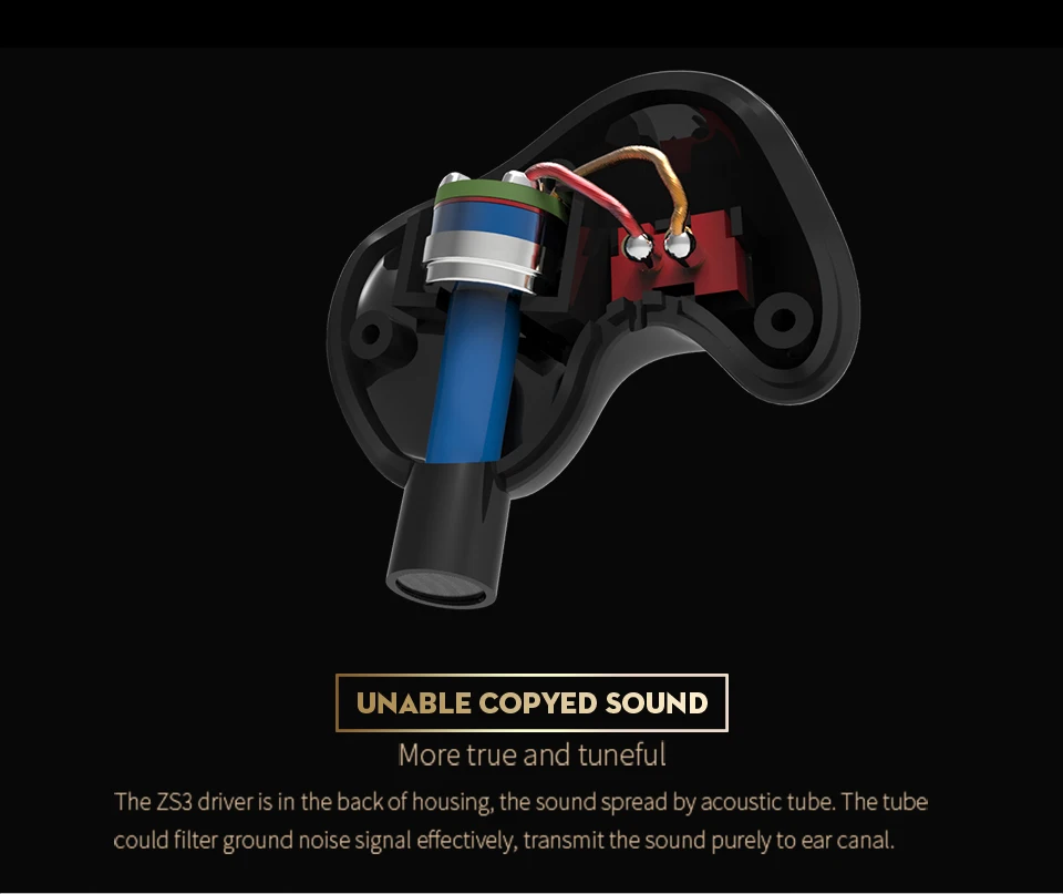 KZ ZS3 1DD Hifi спортивные наушники-вкладыши Динамический драйвер ш...
