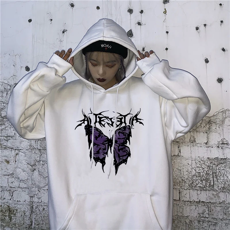 Женская толстовка с капюшоном и принтом бабочки, в готическом стиле