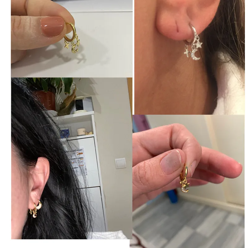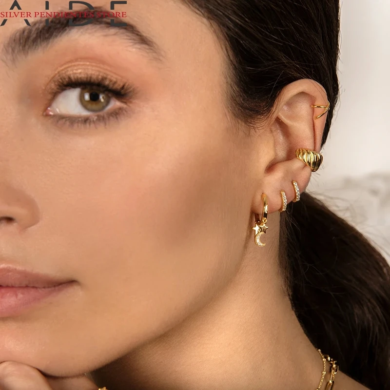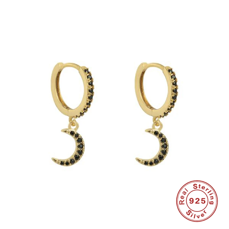 AIDE светильник класса люкс 925 стерлингового серебра с изображением Луны и звезд, крест циркон серьги для женщин ювелирные изделия золотые кольца серьги-кольца