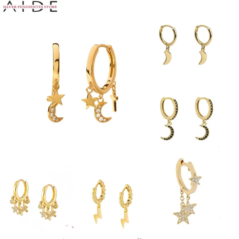 Светильник AIDE, роскошные серьги из стерлингового серебра 925 пробы со звездой Луной и крестом, циркониевые серьги для женщин, ювелирные изделия, Золотые кольца, серьги