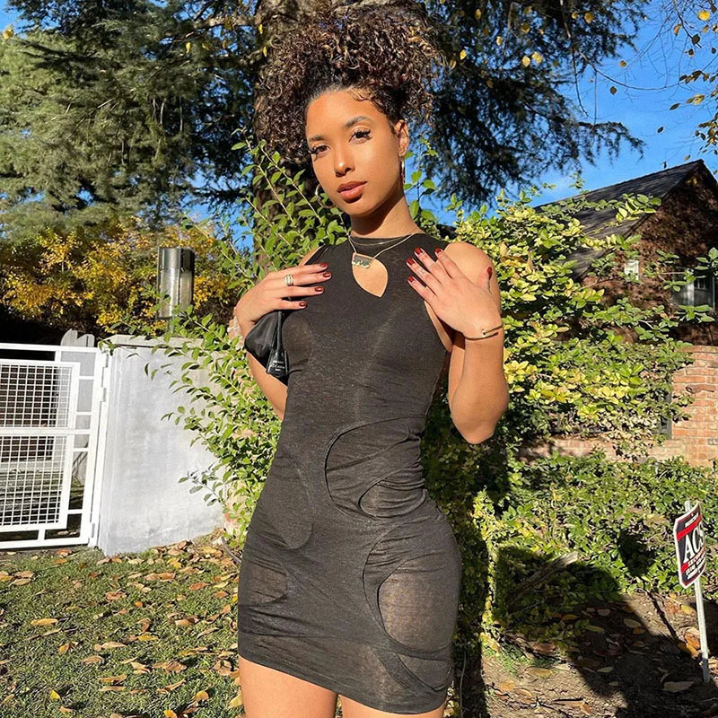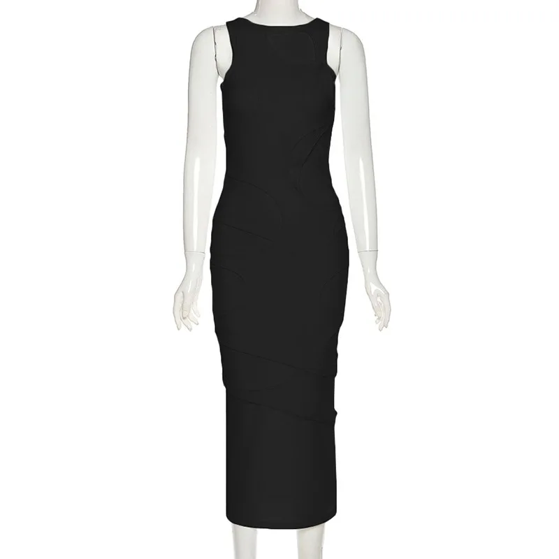 Женское длинное платье, однотонное, с вырезами, без рукавов