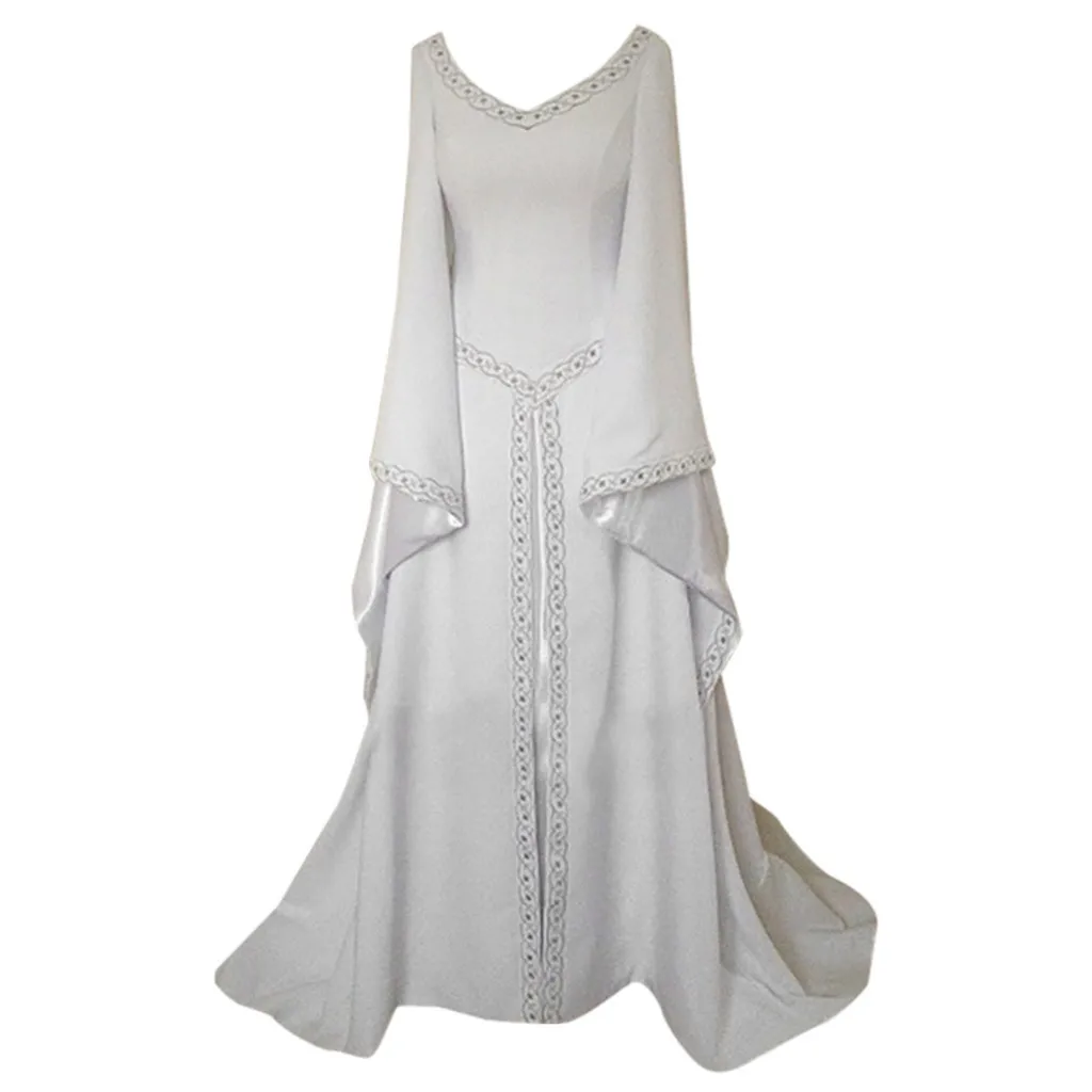 Платье женское средневековое с длинным рукавом и V-образным вырезом