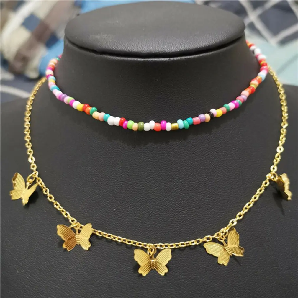 Ожерелье-чокер женское золотистое с бабочкой в форме звезды