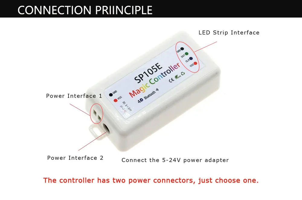 * 3. WS2812B Светодиодная лента работает с DC5V, и ей необходимо управление светодиодным контроллером WS2812B