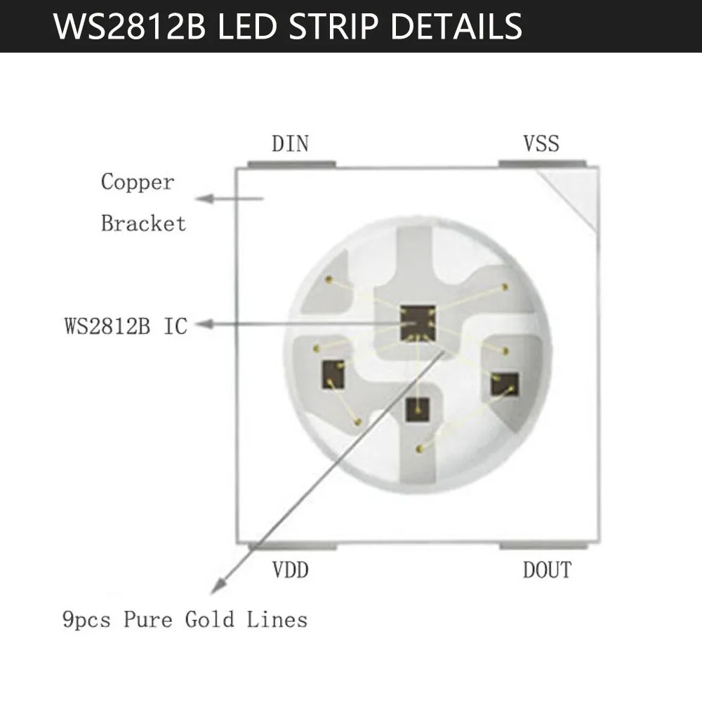 Тип IC: улучшенная версия WS2812 IC (Встроенный светодиодный индикатор 5050SMD RGB)