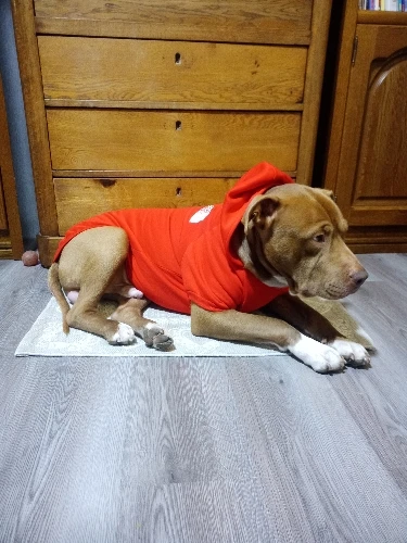 Я взял 5XL для моей 16-килограммовой суки, и она маленькая... Грудь и она короткая от лума Но эй, это круто, я попробую больший размер, и это мы дадим его Защитнику животных, который вам нужен с свежим, который он делает