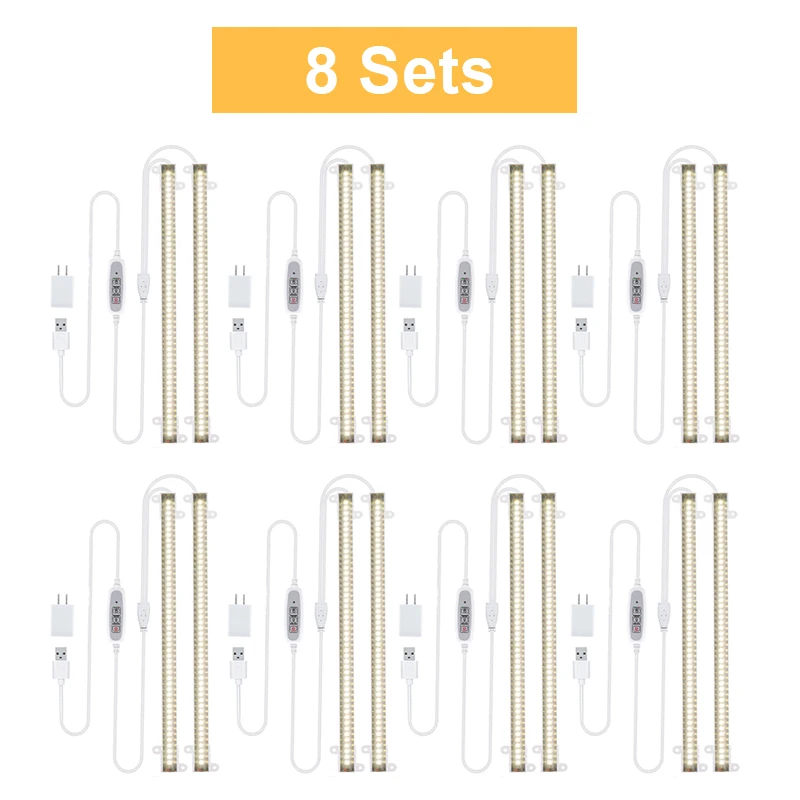 8 шт. светодиодный светильник для выращивания, полоски, полный спектр, таймер, светодиодный светильник для растений, фитолампа, фитоламповая палатка, теплица с адаптером питания Спецификация: Светодиодная лента солнечного света: 10 Вт/бар Материал: ПВХ Входное напряжение: 5 В Светодиодный Кол-во чипов: 96 (48 Светодиодный чипов для каждого бара) Длина волны: 380-780 нм светильник Срок службы: 50000 часов Светильник бар: 13,2 дюйм (ов) Шнур питания: 71 дюйм Многократное использование: Светодиодный светильник для выращивания растений в помещении используется для теплицы, садоводства, гидропоники или аквафонной посадки и внутреннего садоводства. Посылка включает в себя: 8 x растут огни для растений (1 комплект с 2 полосками) 8x USB адаптер питания 16 х двухсторонняя лента 64 винта 1x Руководство пользователя Особенности: Высокая эффективность и энергосбережение Безопасность и здоровье для ваших растений Большое покрытие для ваших растений, которым нужен достаточно светильник для выращивания Сделайте ваши растения более быстрыми и здоровыми Максимальная температура: 140 ℉. Безвредный для ваших растений Максимальное расстояние между двумя лампами-светильник: 33 дюйма Подходит для суккулентов, цветов, семян, базилика, розмарина, нарциссов, плюмерии, алоэ, Орхидея, тимьяна, огурцов, помидоров, перцев и т. д. [Полный спектр светильник для выращивания] Этот растительный светильник излучает все длины волны светильник от 380нм до 800нм, как и естественный солнечный светильник. Было доказано, что он ускоряет Фотосинтез и эффективно способствует росту комнатных растений. [2H/ 4H/ 8H Таймер Автоматическое включение и выключение каждый день] Этот светодиодный светильник для выращивания может быть установлен для выключения после 2H/4H/8H. После установки времени, не выключайте светильник или не отключайте питание вручную, светильник включается автоматически одновременно на следующий день. [4 регулируемых уровня яркости] 25%, 50%, 75%, 100% прочности. Две полосы 10 Вт и 48 Светодиодный светильник достаточно излучают, чтобы покрыть все этапы роста растений, не беспокоясь о выгорании растений Plug And Play-светильник для выращивания поставляется с винтами и двусторонней лентой для легкой установки. Компактный дизайн подходит для различных приспособлений и поверхностей. Шнур питания длиной 71 дюйм для удобства использования в офисах, в помещении, на стойках растений, теплицах и т. д.