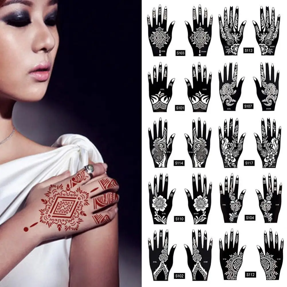 Индийская хна Менди временная татуировка трафарет для мужчин, женщин и мужчин, боди-арт наклейки Beauty, водонепроницаемая поддельная ручка, ручная повторная татуировка