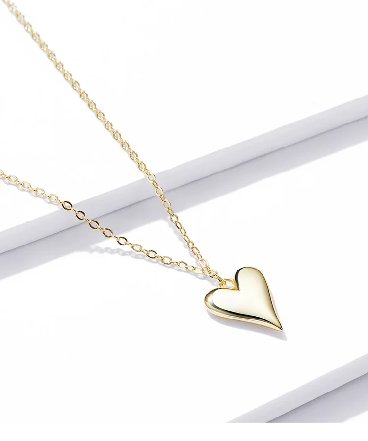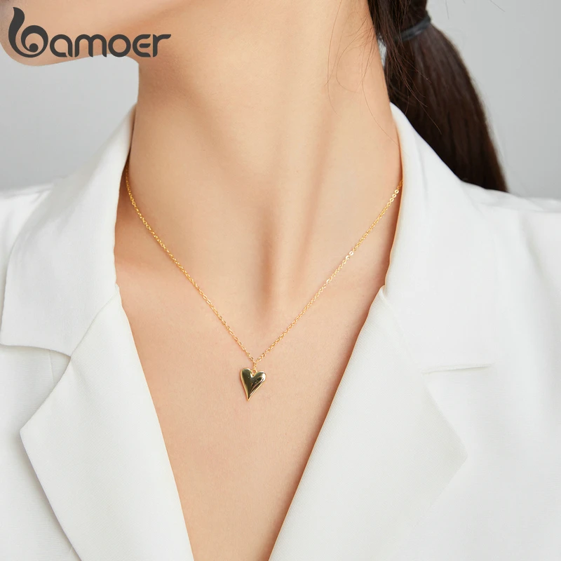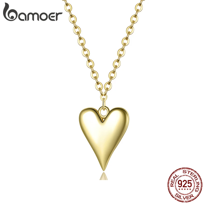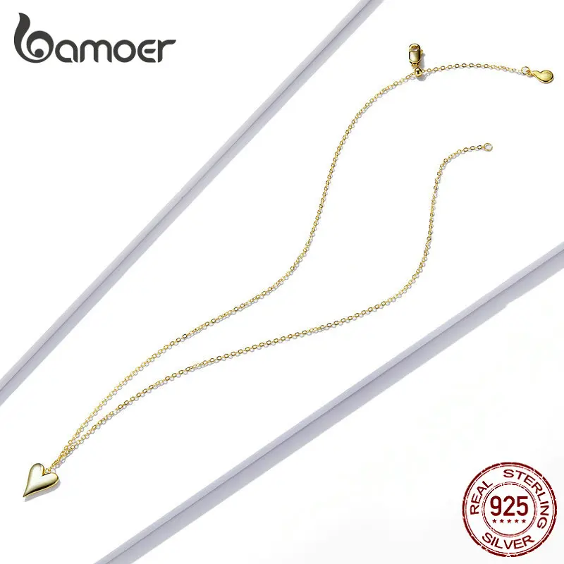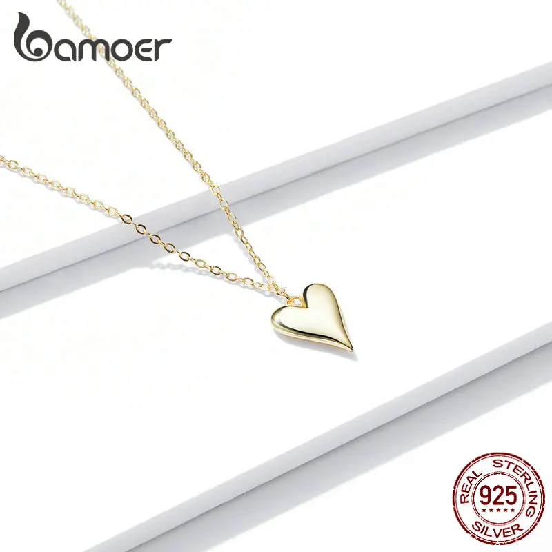Серебряное ожерелье для влюбленных bamoer, ожерелье из стерлингового серебра 925 пробы с простой золотистый сердцем для девушек, ювелирные изделия для свадебной вечеринки BSN220
