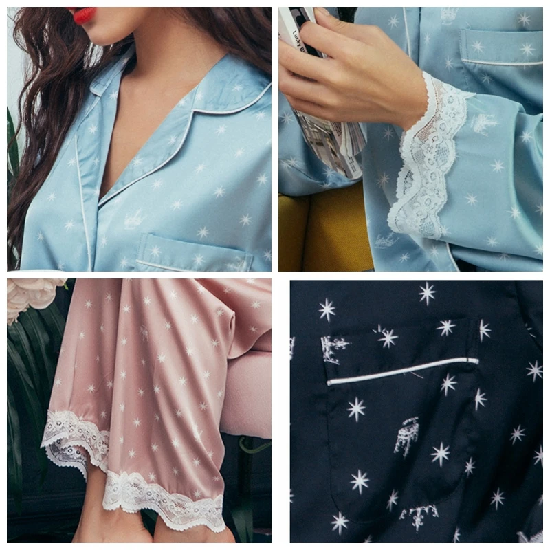 Пижамный комплект JULY'S SONG женский атласный, элегантная Милая одежда для сна из искусственного шелка, с длинным рукавом, кружевной топ с принтом в виде короны и звезд, лето-весна