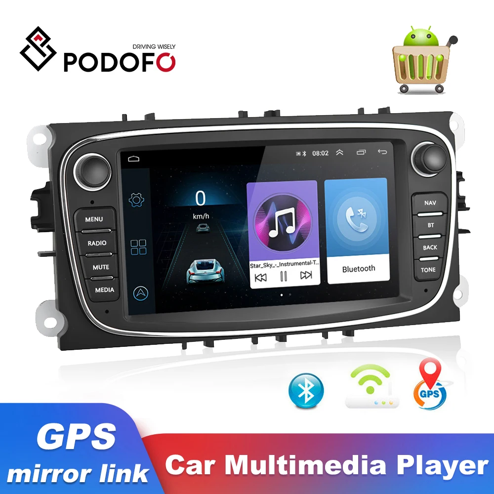 Автомагнитола Podofo, мультимедийный плеер на Android, с 7 "сенсорным экраном, GPS, Wi-Fi, MP5, Bluetooth, FM-радио, типоразмер 2DIN