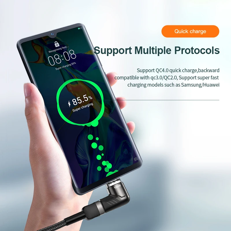 Магнитный адаптер KUULAA 100 Вт Type-C для MacBook Pro Air, угловой...