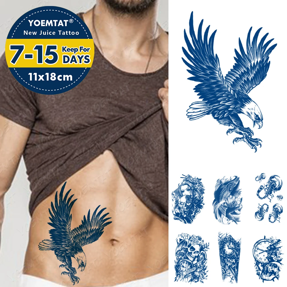Сок прочного чернил татуировки, боди-арт Водонепроницаемый временная татуировка Стикеры Дракон Волк Тотем Орел Тату для рук имитация часов татуировки золотого и серебряного Для мужчин