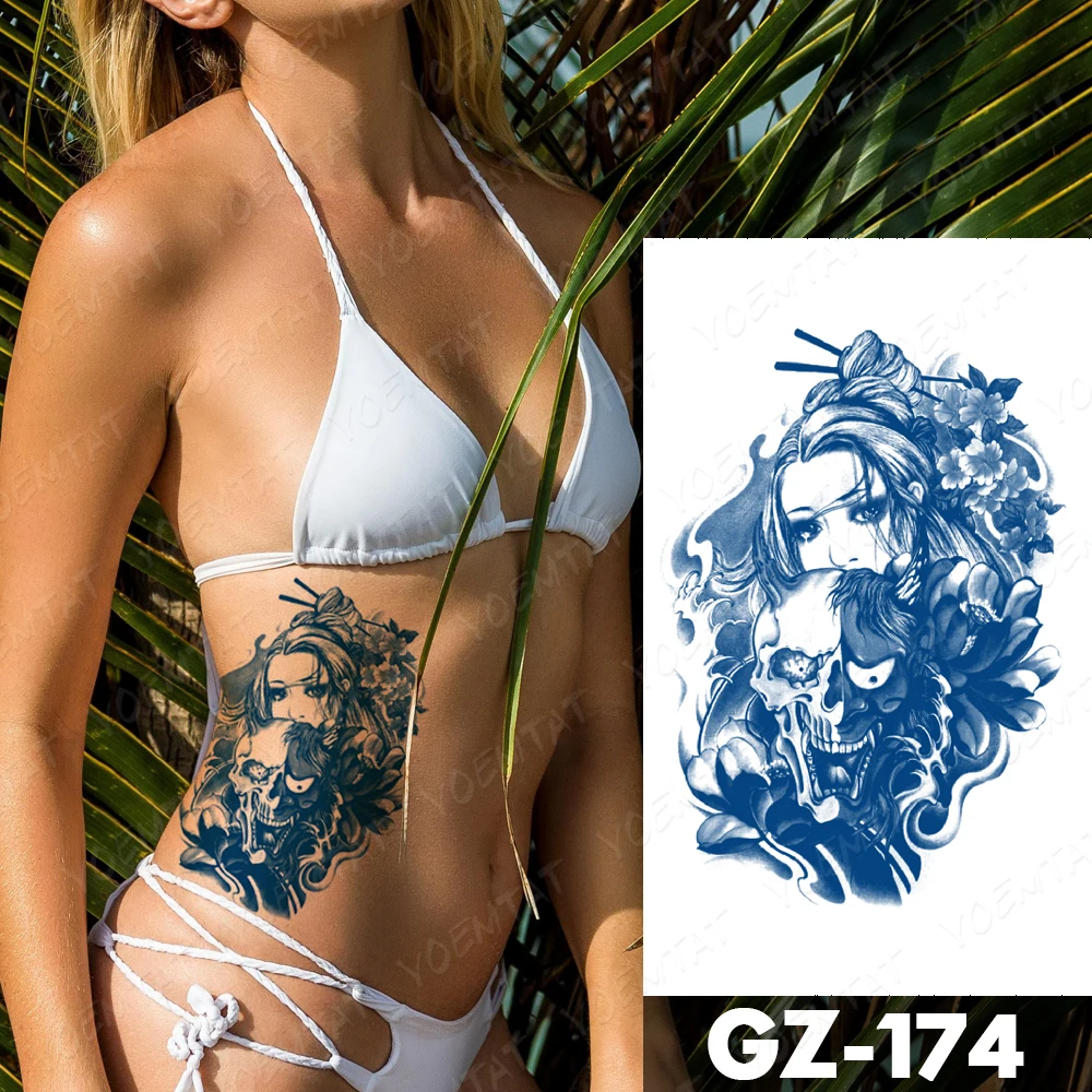 После контакта с кожей, окислительно активированный пигмент появится синий и черный, что также является цветом настоящей татуировки. Не бойтесь натирать, это более реалистично, татуировка на две недели Новые материалы, отличные цвета, более настоящие