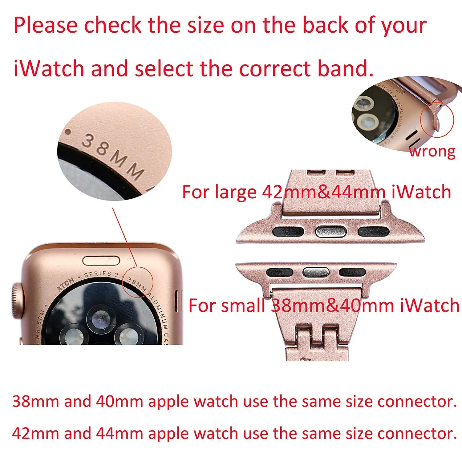 1. Премиум Металлические Классические полосы из нержавеющей стали идеально подходят для Apple Watch всех моделей2. Идеальная технология полировки, делает поверхность более гладкой и сверкающей.3. Элегантный тонкий ремешок в комплекте стразы. Просто достаточно шикарно, чтобы сделать его очень модным. Ваш браслет iwatch выглядит как ювелирное изделие. Хороший вариант носить apple watch с вашими платьями. Приносит вам много комплиментов4. Материал: изготовлен из отборного премиум-класса металла из нержавеющей стали 316L с роскошью, благородством, элегантностью и долговечностью. Уникальный художественный и повседневный дизайн делает ремешок более красивым, ярким, роскошным, великолепным, изысканным и передовым. Вы будете выделяться из толпы.5. Легко изменить размер: Просто снимите складную застежку рукой, чтобы изменить размер ремешка. Инструмент не нужен