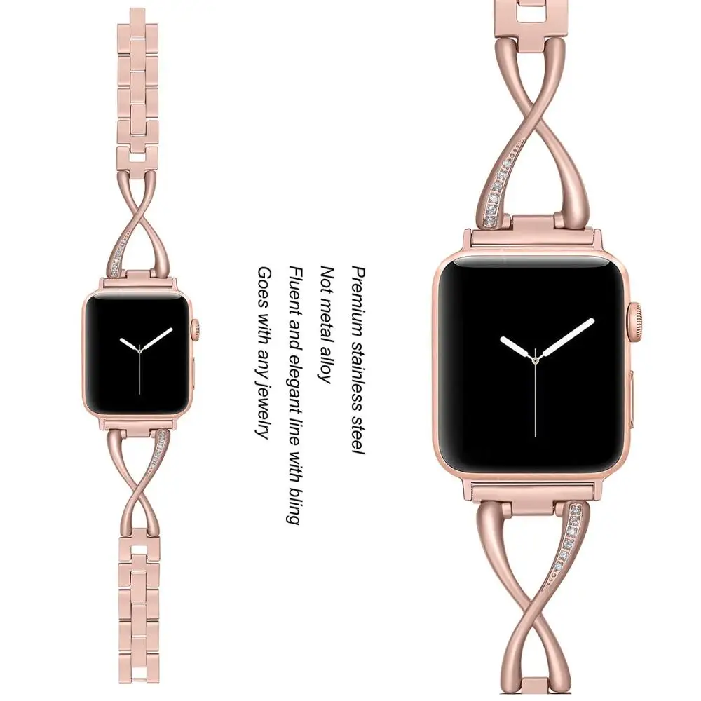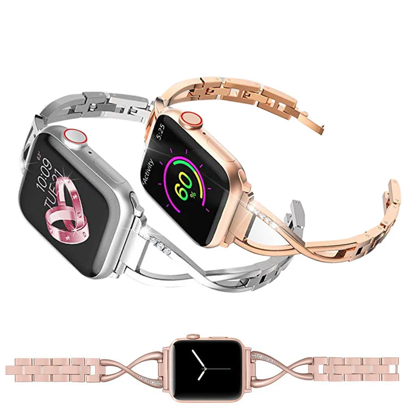 Браслет женский тонкий из нержавеющей стали с бриллиантами, ремешок для Apple Watch 41 мм 45 мм 40 мм 44 мм, подходит для iWatch 3 4 5 Se 6 7