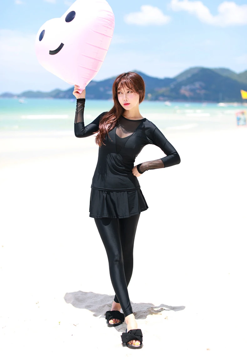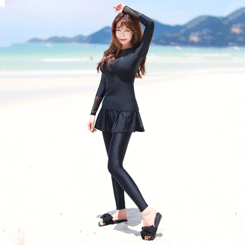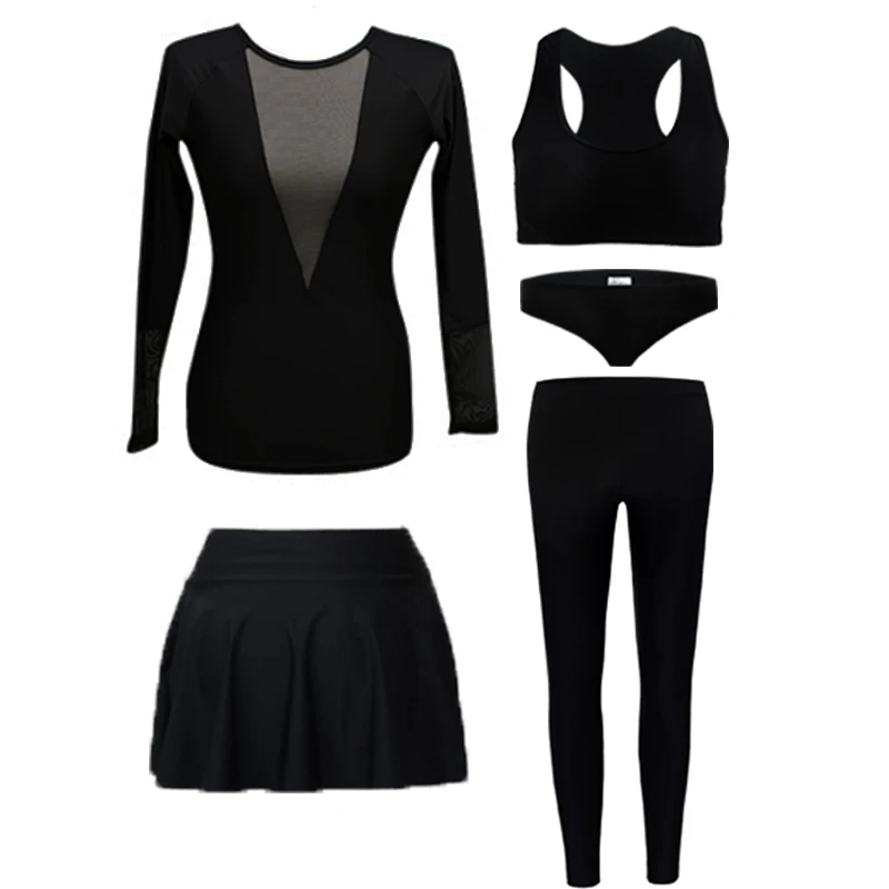 Женский спортивный купальник с пуш-ап эффектом, черный купальник из 5 предметов с длинными рукавами и длинными брюками, костюм для серфинга, спортивная одежда, пляжная одежда, 2021