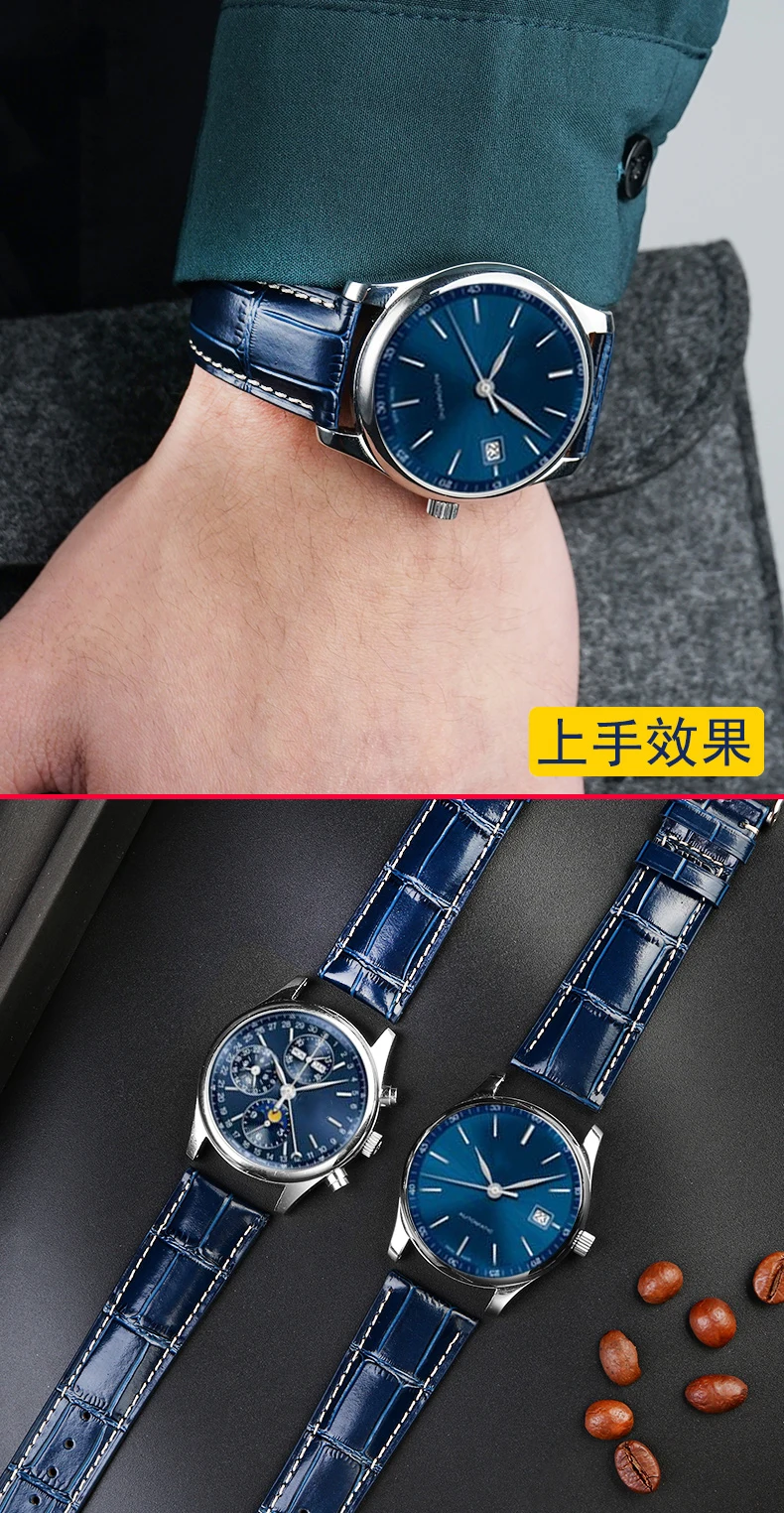 Кожаный ремешок L2 master craftsman, великолепная фаза Луны, Kangkas, синяя коллекция, крокодиловый узор, пряжка-бабочка, кожаный ремень