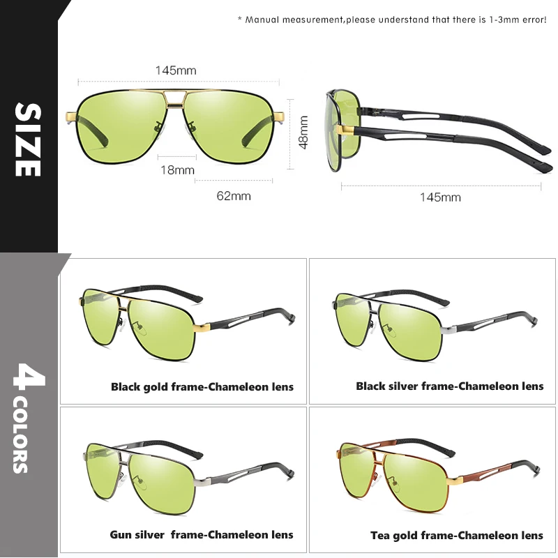 Солнцезащитные очки Мужские поляризационные, квадратные фотохромные, с антибликовым покрытием, для дневного и ночного видения, Топ 2021