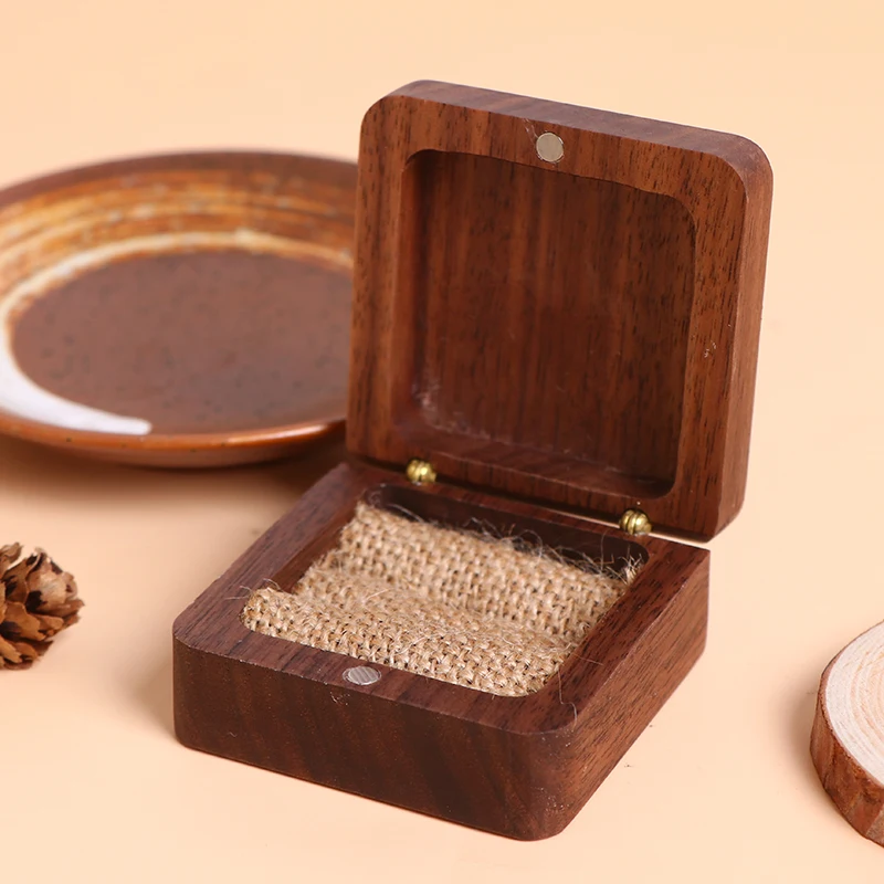 Из орехового дерева Винтаж замок сундук коробка для хранения украшений Чехол Органайзер c логотипом отличный подарок складной мини деревянной коробке брелок Jewelr