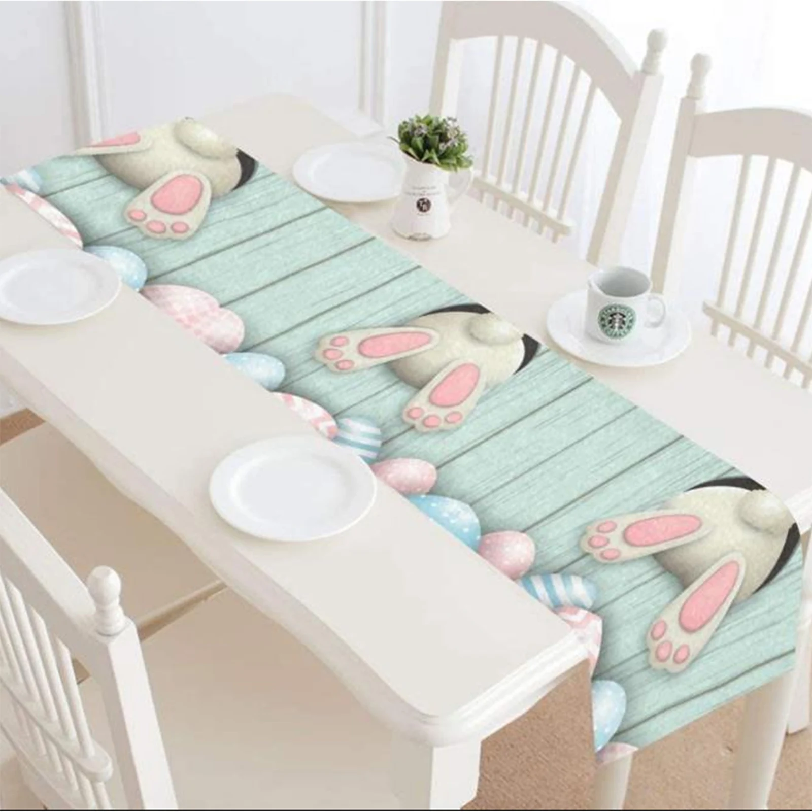 Эта длинная скатерть в мультяшном стиле с милым рисунком пасхального кролика и яиц, уникальная и красивая, милая и модная, мягкая и удобная, многоразовая и долговечная, проста в использовании.