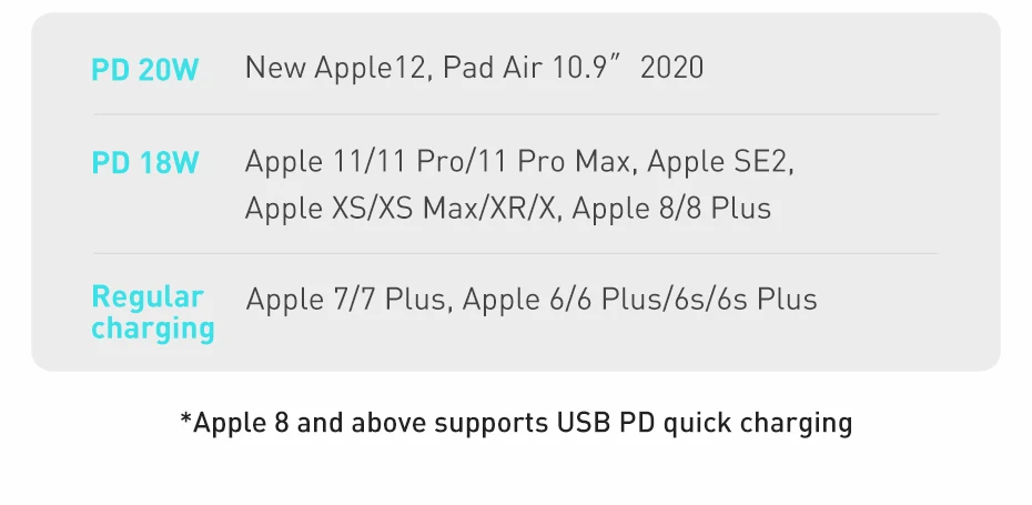 Type 3:20W Super SiOutput: 5V/3A,9V/2A,9V/2.2A,12V/1.67A,15V/1.3A 20W Max